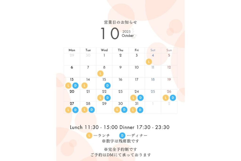 ※ Depending on ingredient availability, same-day reservations may be accommodated.